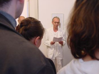 Guten Tag! Ich darf Sie auf’s herzlichste zur Eröffnung der Ausstellung mit Arbeiten von Hermann Theis begrüßen. Ich freue mich, dass Sie gekommen sind. Besonders begrüßen darf ich die schon hochbetagten Eltern des Künstlers, die aus gegebenem Anlass extra nach Berlin gekommen sind.