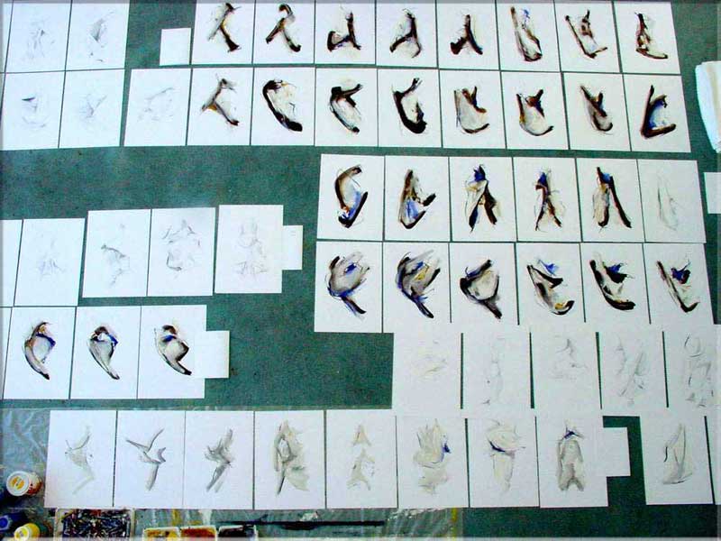 each "Untitled" - 12"x16,5" - Berlin 1999-2000 - oil, oil chalk, graphite, coal on paper (private collection Stoppe, Berlin)